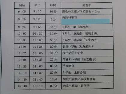 明日の文化発表会の体育館のプログラムを掲載しました。