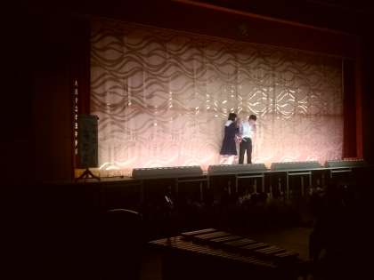 幕間パフォーマンスも盛り上がってます。インタビューをしています。鑑賞している生徒たちも本当に集中して楽しんでいます。