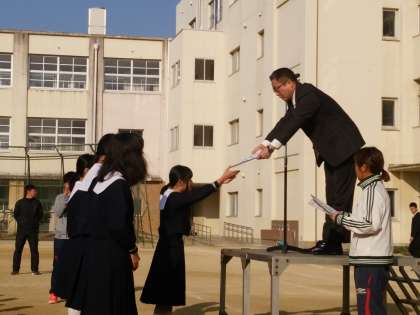 最後に、前期生徒会長から、「人の支えがあって会長という大役が出来ました。」との感謝の言葉が印象的でした。