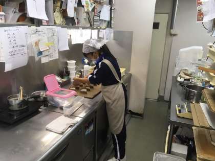 コンビニエンスストアや診療所、ケーキ屋さんの厨房で職場体験しています。