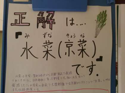 以前、廊下に出題している様子を、ホームページに掲載させて頂きました、野菜クイズの解答を掲載させて頂きます。
