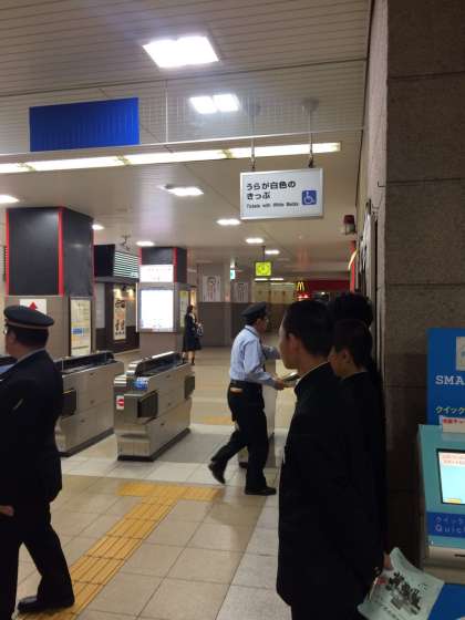 地下鉄駅での体験や、スポーツ店での体験の様子です。