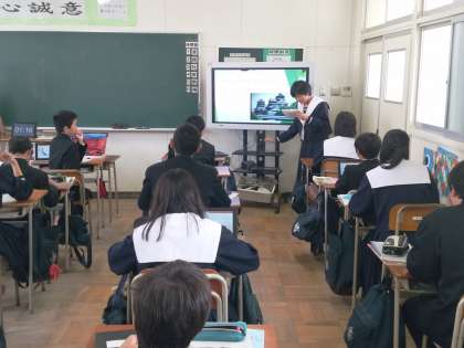 社会の授業ではICT機器を使った授業を行っています。