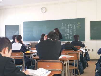 国語では、「名詞」を学習しています。机や椅子、友達の名前など、形になるものや、夢や希望といった感情を表すものなど、生徒は自由に書き出します。