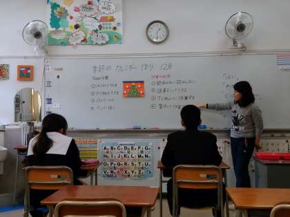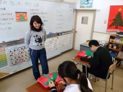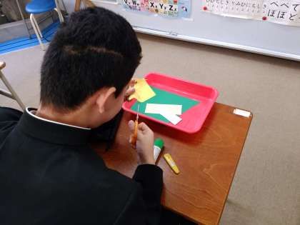 支援学級の授業公開です。今日は季節のカレンダー作りをしています。