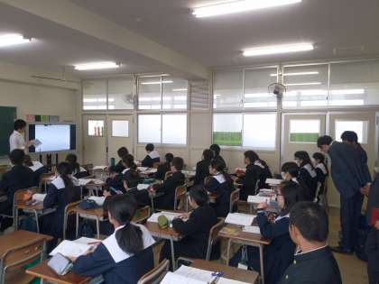今日も校内授業公開をし、多数の先生方が授業を参観しています。