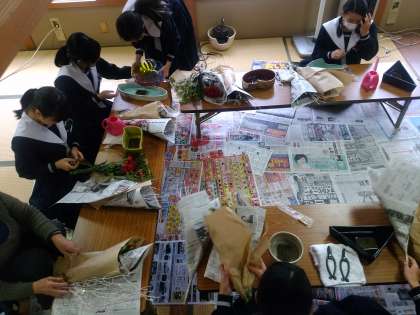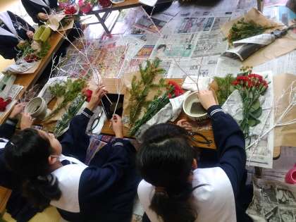 今日は、華道を習っています。クリスマスらしい生け花が出来ますでしょうか。