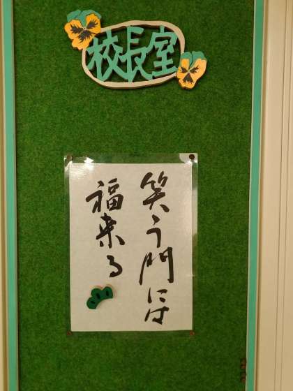 校長室の言葉を変えました。その向えにあるお正月飾りも併せて、写真を掲載します。