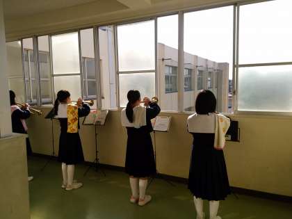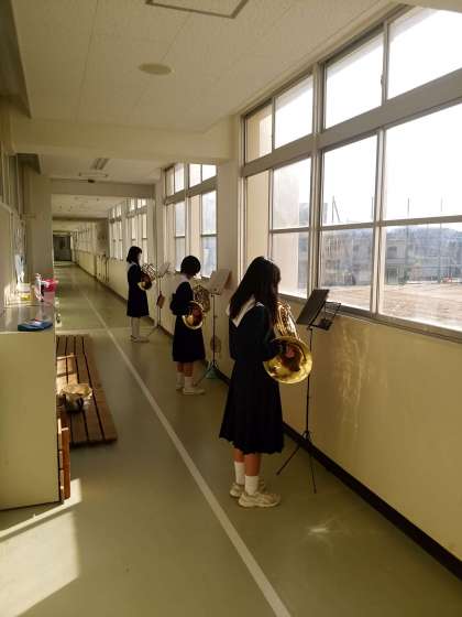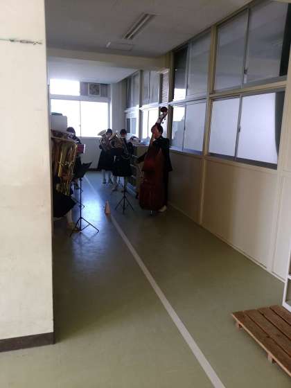 本日から吹奏楽部も練習を開始しています。各パートに分かれて、ロングトーン等の基本練習からやり始めます。
