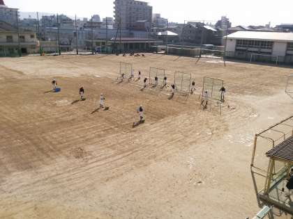 今日は始業式。その後グラウンドでは、お昼までに練習を進めています。