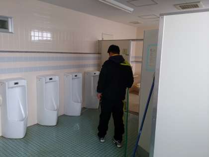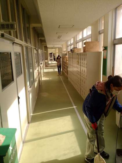 1年生の学年の先生方を中心に掃除をし、皆が来る準備をしています。