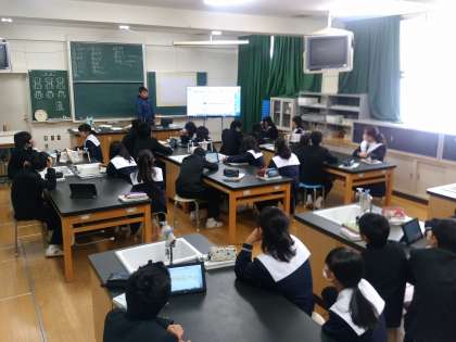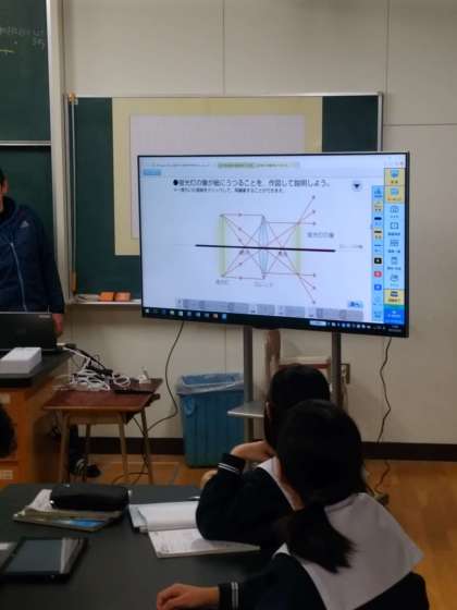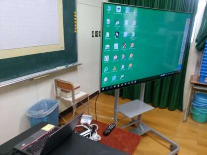 昨日納品された、ICT機器とタブットを接続し、早速授業を行っています。