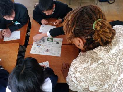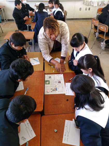 書いてある指示などはすべて英語。さいころの目や、進む駒の升目を数えることも