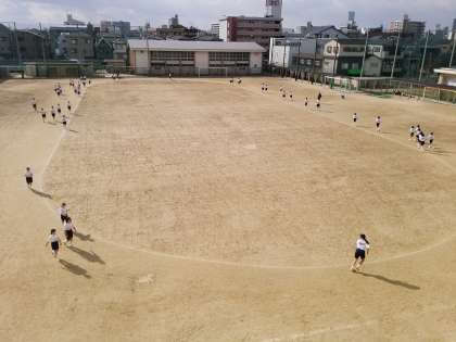 1年生は、来週に予定されていますマラソン大会に向けて、持久走をしています。