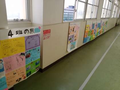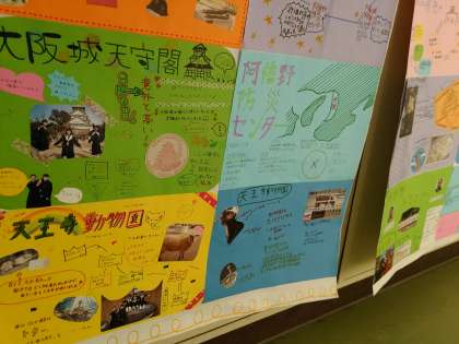 先日の大阪市内フィールドワークに行った1年生が、それぞれの見学したことをまとめました。それを、廊下に掲示しています。