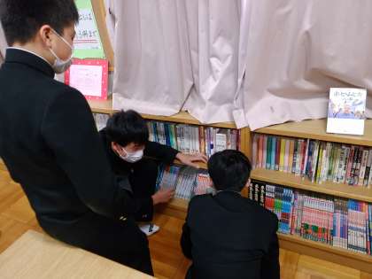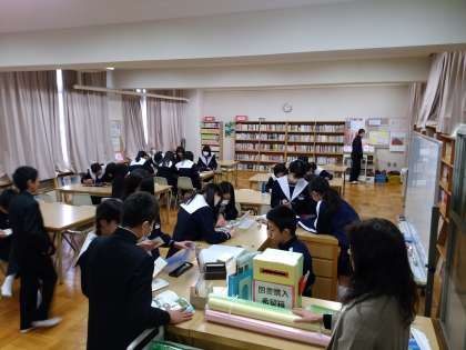 木曜の開館も定着してきたのか、利用する生徒は沢山居て、閲覧したり、貸し出ししたりする生徒で、図書室はにぎわっています。