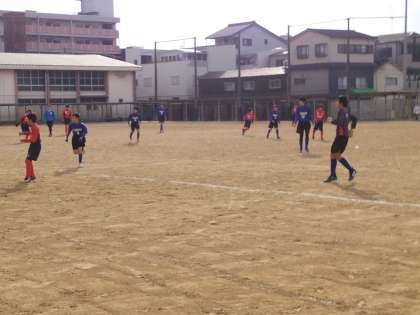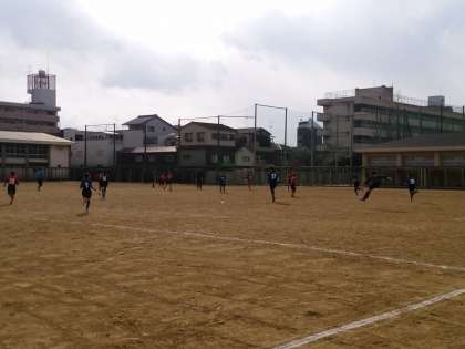 午前中とは一転し、午後は玉津中学校に来て戴いて、サッカー部が練習試合をしています。本校も玉津中も、ABチームを作ってゲームをしています。