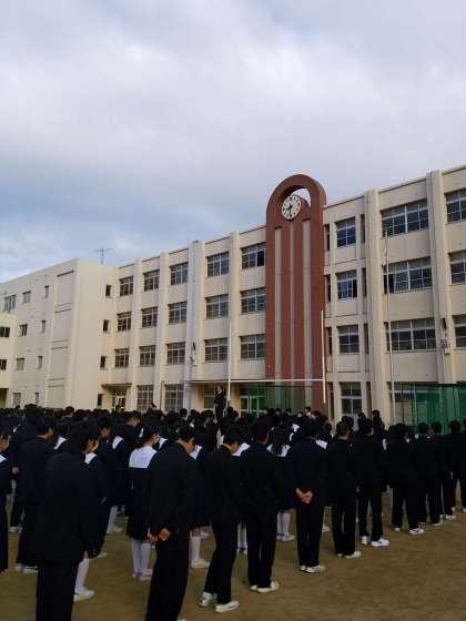 久しぶりの全校集会です。25分にはほとんどが揃い、この時間に校長先生からの講話を頂いています。