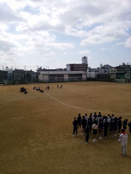 本日4時間目、体育の授業の準備体操や、集まって今日の持久走の説明です。