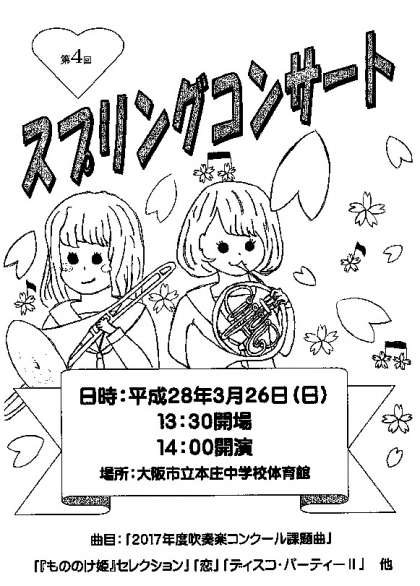 吹奏楽部からスプリングコンサートの案内をさせて頂きます。