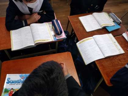 次は2年生の英語の授業。教室に入って戴き、アクティヴな生徒の様子を見学していただきました。