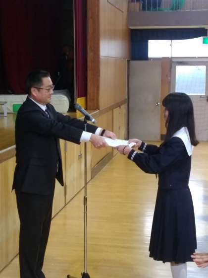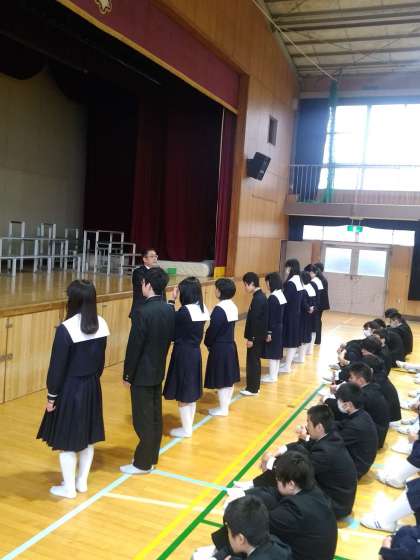 冬受検の英検、2級合格者などが一人ひとり表彰されました。