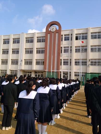 今日は3年生の多くの生徒は、公立高校の入試です。2年後ではありますが、あっという間です。とのお話に、1年生は真剣に聞き入っていました。