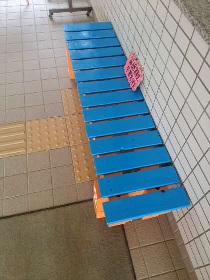 廃材を利用して作ったベンチを、玄関ホールに設置しました。68期生が残してくれた思い出は、様々な形となって本庄中学校の歴史となっていきます。