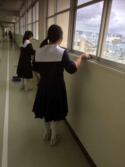 吹奏楽部員が、自発的に掃除をしています。楽器を演奏していると一番に視界に入るところです。気づいたことを気づいた人がする、という基本的なことを実行しているだけではありますが、なかなかできることではありません。