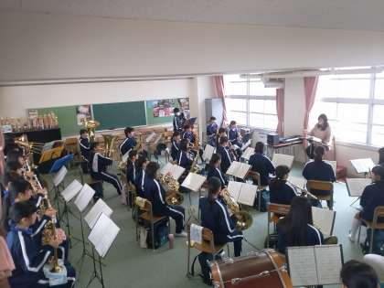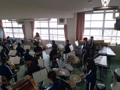 写真は、4月5日(水)午後4時頃から、曽根崎警察地下コミュティープラザで予定されています「未成年者飲酒防止・飲酒運転撲滅 全国統一キャンペーン」オープニングセレモニーでの演奏の練習をしている吹奏楽部の様子です。