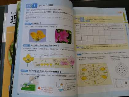 桜の花を丁寧に開き、花びらやおしべめしべなど、一つひとつの名前や役割を学習しています。