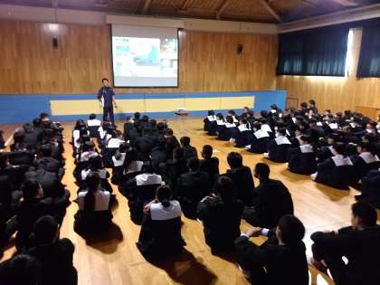 3年生は遅ればせながら、今年来られた先生で、学年に所属していただく先生の紹介をしています。