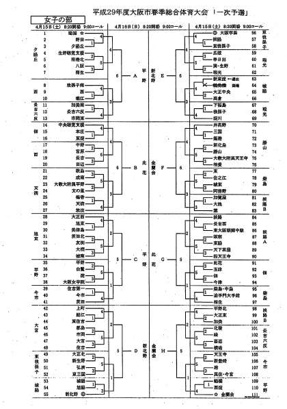 4月15日(土)16日(日)に予定されています、平成29年度大阪市春季総合体育大会 バレーボール一次予選の抽選結果を掲載します。