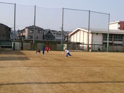 今朝のグラウンドでは、ラグビー部とソフトボール部が朝練をしています。