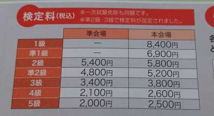 なお、検定料が変わっていますので、こちらについてもご注意ください。