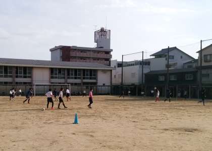 サッカー部は多くの人数で、ボールコントロールの練習をしています。思ったところにボールを運ぶ。簡単そうに見えてなかなか難しいものです。