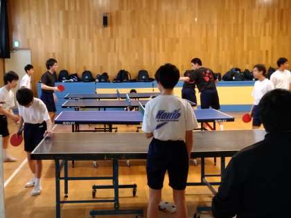 格技室では卓球具が練習をしています。こちらにも新しい顧問の先生が増え、大所帯を支えてくれます。
