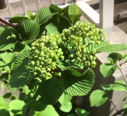 アジサイに似た「オオデマリ」。なかなか栽培に難しく、ここ何年も花を咲かせませんでした。今年は咲いてくれそうです。