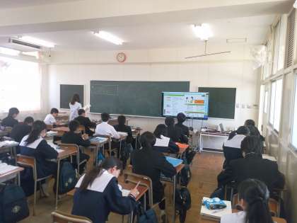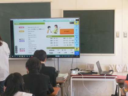 英語の授業では、ICT機器の活用で、電子黒板を使っています。