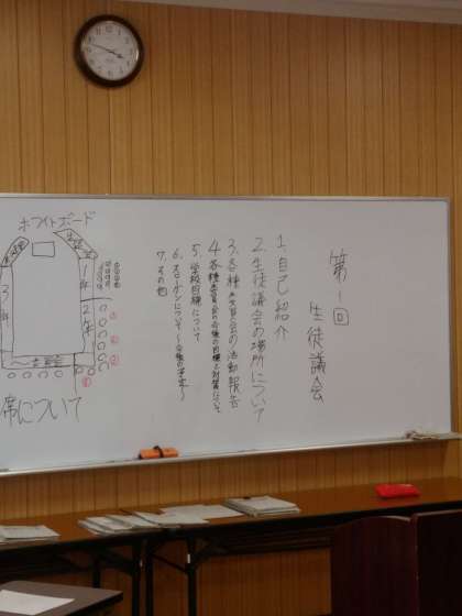 各学級代表など、中心になる生徒が集まって、今年度の本庄中学校を考えます。