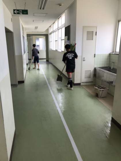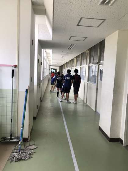 ラグビー部は今日、校舎内でトレーニングを行い、各フロアの掃除をしています。