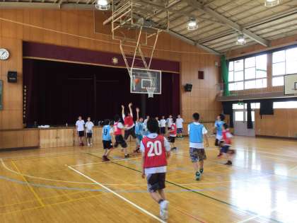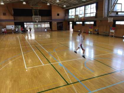 1年生は普段出来ない全面を使ってドリブル、レイアップシュート、1on1など練習しました。