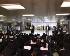校長先生のお話や、生徒代表挨拶などが行われています。