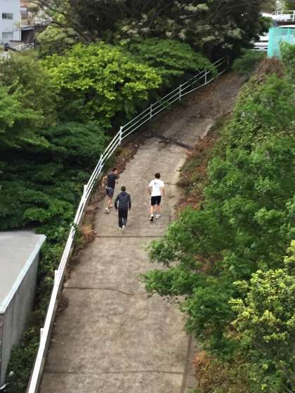 ほとんどの生徒はまだ寝ていますが、ラグビー部や野球部等の一部の生徒は朝練をしています。