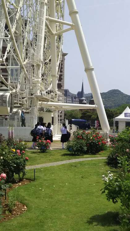 バンジーや観覧車の順番待ちです。半日では回りきれません。