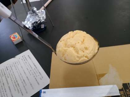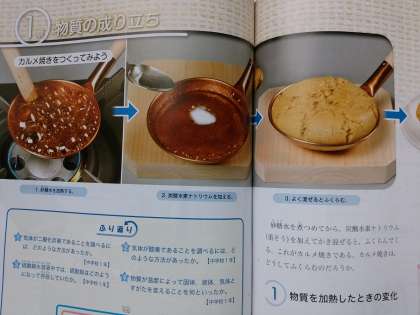 理科の実験では、昔懐かしい「カルメ焼き」を作っています。
