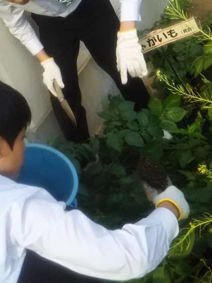 中本小学校からいただいた里芋などの種芋を育てています。