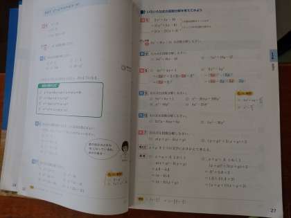 数学では因数分解を学習しています。公式に当てはまるような形式に変更すると簡単なんですが。