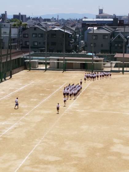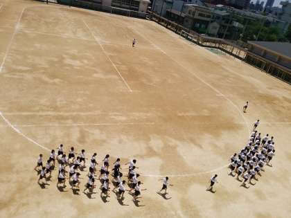 体育の授業では、体育大会に向けて「行進」の練習をしています。