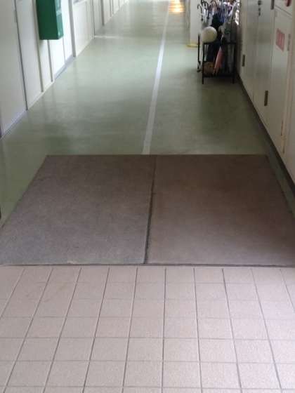 登校してくる本庄中学校の生徒の皆さんは、廊下が非常に滑りやすくなっています。マットを敷いておきますので、できるだけ濡れた靴底をぬぐって、十分注意をして歩くようにしてください。